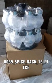 360 revolving spice rack. Which is revolve 360 degree which holds 8 bottles. Bottles made from pet material and the main body made from virgin plastic abs material which property is shock proof and unbreakable