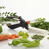 Minimum effort is required when cutting. You won‰?t need a cutting board as it‰?s built right into our kitchen tool. Cut vegetables, greens, and other products right in the bowl, pan, or frying pan. Create the easiest food decoration in even the most sophisticated dishes with our universal knife. Cleaning after cutting will be easy as you simply have to wash the herb scissors in a dishwasher or by hand.