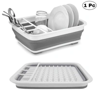 0804 Collapsible Folding Silicone Dish Drying Drainer Rack with Spoon Fork Knife Storage Holder