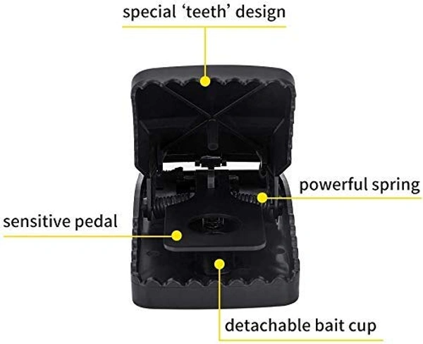 Forget about false triggers, stolen bait and escaping mice. Kat Sense mouse traps feature a powerful, highly responsive snap mechanism with a sensitive pedal and specially designed teeth to guarantee a 100% kill rate, every time. The improved, humane design ensures that rodents are killed fast and with as little pain as possible, while the bait cup can be easily removed, refilled and placed back into the mouse trap without having to set it first.