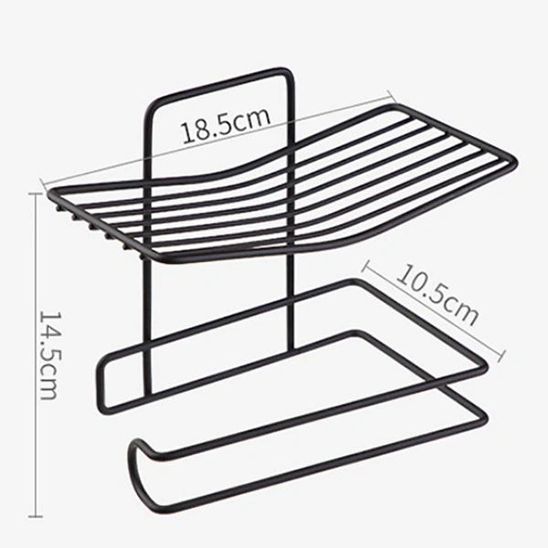 1760 Iron Black Coated Self Adhesive Wall Mounted Tissue/Toilet Paper Holder