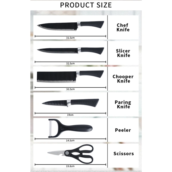 Stainless Steel Knife Set With Chef Peeler And Scissor (6 Pieces)