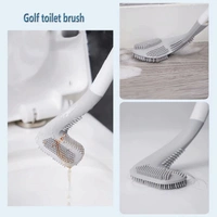 Silicon Golf Toilet Cleaner Brush with Non-Slip Long Handled with Magic Sticker Holder/Hook for Bathroom
