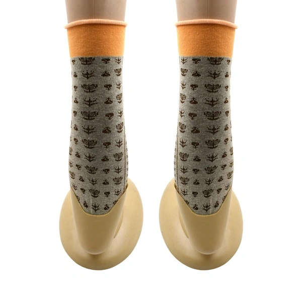 Women's Cotton Solid Ankle Length Printed Fancy Socks Combo - 1 pair (Multicolour, Medium)