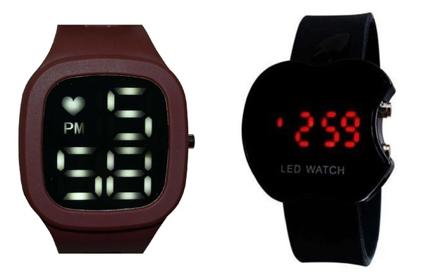 | These watches are apple LED digital dail with silicon strep and stainless steel buckle which are told you 24 hrs. time a small battery of silicon used in this watch. |